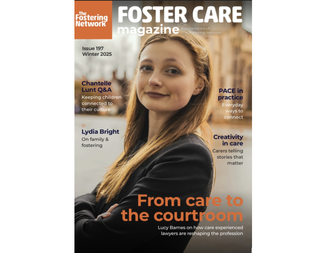 Lucy Barnes on the cover of the Fostering Network’s Foster Care Magazine ‘From Care to the Courtroom’